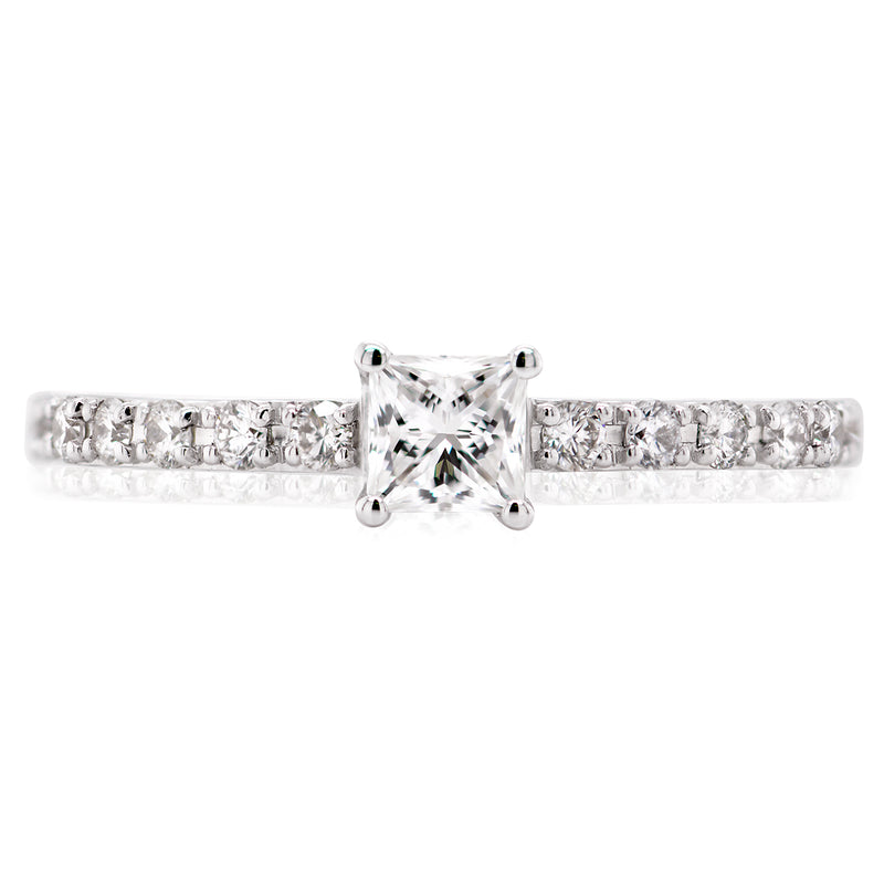 El corte princesa es una opción moderna y elegante, caracterizada por su forma cuadrada o rectangular con esquinas afiladas. Es una excelente elección para quienes buscan un diamante con un brillo intenso pero con un diseño contemporáneo.