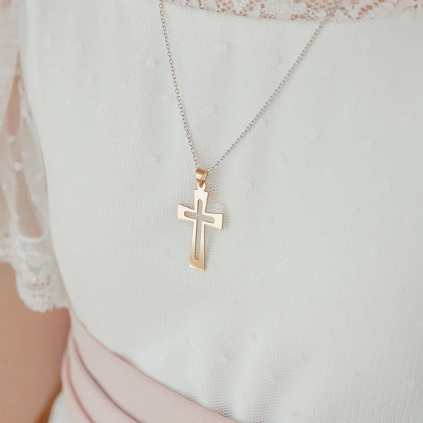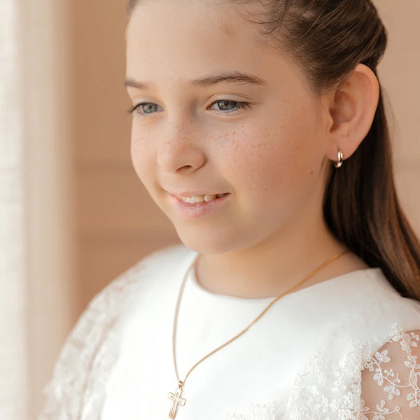 Al seleccionar una cruz para Primera Comunión, es importante considerar la calidad del material. Las cruces hechas de oro de 14K o 18K y plata esterlina son opciones populares por su durabilidad y elegancia. En Carranza y Carranza, nos aseguramos de utilizar los mejores materiales, garantizando que cada cruz sea un tesoro duradero que pueda ser pasado de generación en generación.