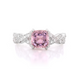 Everyday air: Medio círculo de diamantes redondos brillantes montados a través de exquisitas uñas lo cual minimiza la cantidad visual del oro haciéndolo parecer que están montados sobre aire.