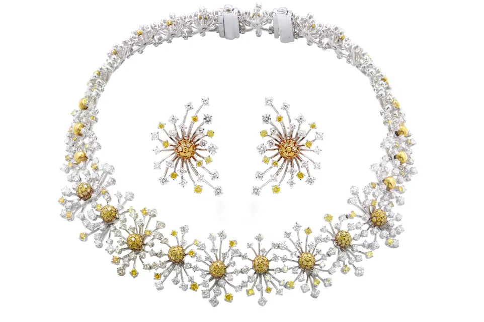 - Peso total en quilates 23.8 cttw. de diamantes naturales blancos y amarillos