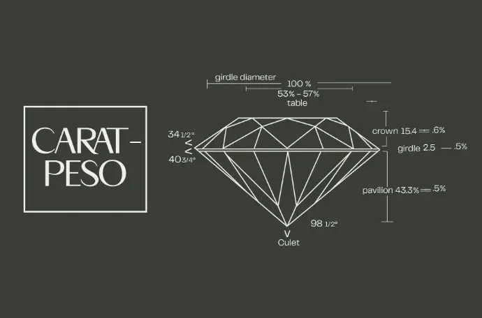 El Carat o peso es un factor a considerar al seleccionar diamantes y joyas. Es la variable más fácil de determinar. El quilate mide el peso de un diamante, y cuanto más grande es el diamante, mayor es el quilate. Mientras más grande un diamante es más raro y más valioso, por lo tanto son más costosos. Sin embargo, el tamaño no siempre es el factor más importante a la hora de elegir diamantes y joyas: más Carat o Peso no siempre mejora el valor de un diamante. A veces por buscar un diamante más pesado o grande no se corta de manera ideal para maximizar su brillo lo cual le resta valor al diamante.