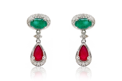 Aretes "MIRO" - Oro 18k blanco - esmeralda rubi
