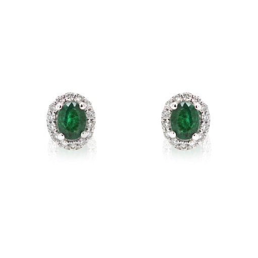 Aretes Frame "HALO OVAL" - Oro 18k blanco - esmeralda y diamantes