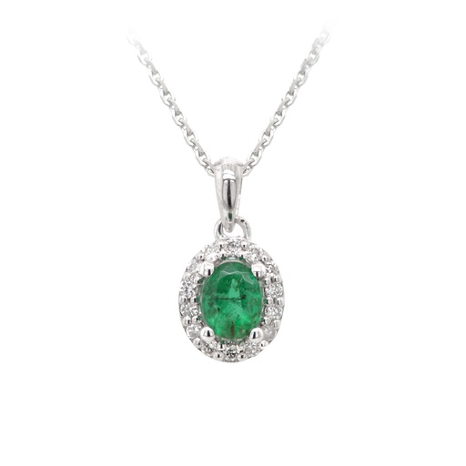 Gargantilla Frame "HALO OVAL" - Oro 18k blanco - esmeralda y diamantes